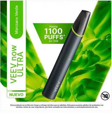 EL VEEV NOW ULTRA ES LA ELECCION PERFECTA PARA QUIENES BUSCAN UN VAPORIZADOR ELEGANTE, PRACTICO Y LLENO DE SABOR. CUENTA CON 1100 PUFF, UNA CAPACIDAD DE 2 ML Y UNA CONCENTRACION DE 3.5% DE NICOTINA, SABOR MANZANA VERDE.
