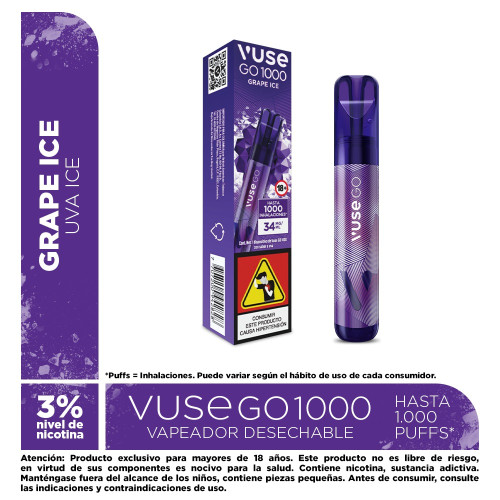 UN VAPEADOR DESECHABLE LISTO PARA USAR SABOR UVA MENTOLADA CON HASTA 1,000 PUFF.RNRNNIVEL DE NICOTINA 3%.RNRNCOMPACTO FACIL DE LLEVAR A CUALQUIER LUGAR.