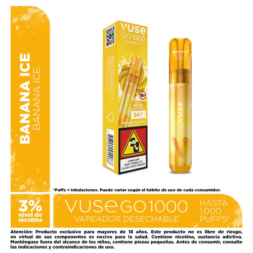 UN VAPEADOR DESECHABLE LISTO PARA USAR SABOR BANANA MENTOLADA CON HASTA 1,000 PUFF.RNRNNIVEL DE NICOTINA 3%.RNRNCOMPACTO FACIL DE LLEVAR A CUALQUIER LUGAR.