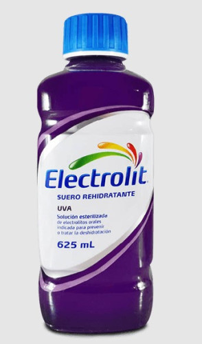 EL SUERO ELECTROLIT TIENE UNA PRESENTACIÓN DE 625ML Y SU SABOR ES DE UVA. ES UNA SOLUCIÓN ORAL QUE AYUDA A REHIDRATAR, SE UTILIZA PARA PREVENIR Y TRATAR EL DESEQUILIBRIO DE HIDROELECTROLÍTICOS PERDIDOS.
