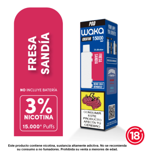 POD WAKA CREATOR DE 15.000 CALADAS ES LA NUEVA GENERACIÓN DE CARTUCHOS DE VAPEO DE ALTA DURACIÓN, DISEÑADOS PARA BRINDAR UNA EXPERIENCIA INTENSA, PROLONGADA Y SIN INTERRUPCIONES. CON 3% DE NICOTINA (30 MG/ML) Y UNA SELECCIÓN DE SABORES CUIDADOSAMENTE DESARROLLADOS, ESTOS PODS OFRECEN UN FLUJO DE VAPOR CONSTANTE DESDE LA PRIMERA CALADA HASTA LA ÚLTIMA.
